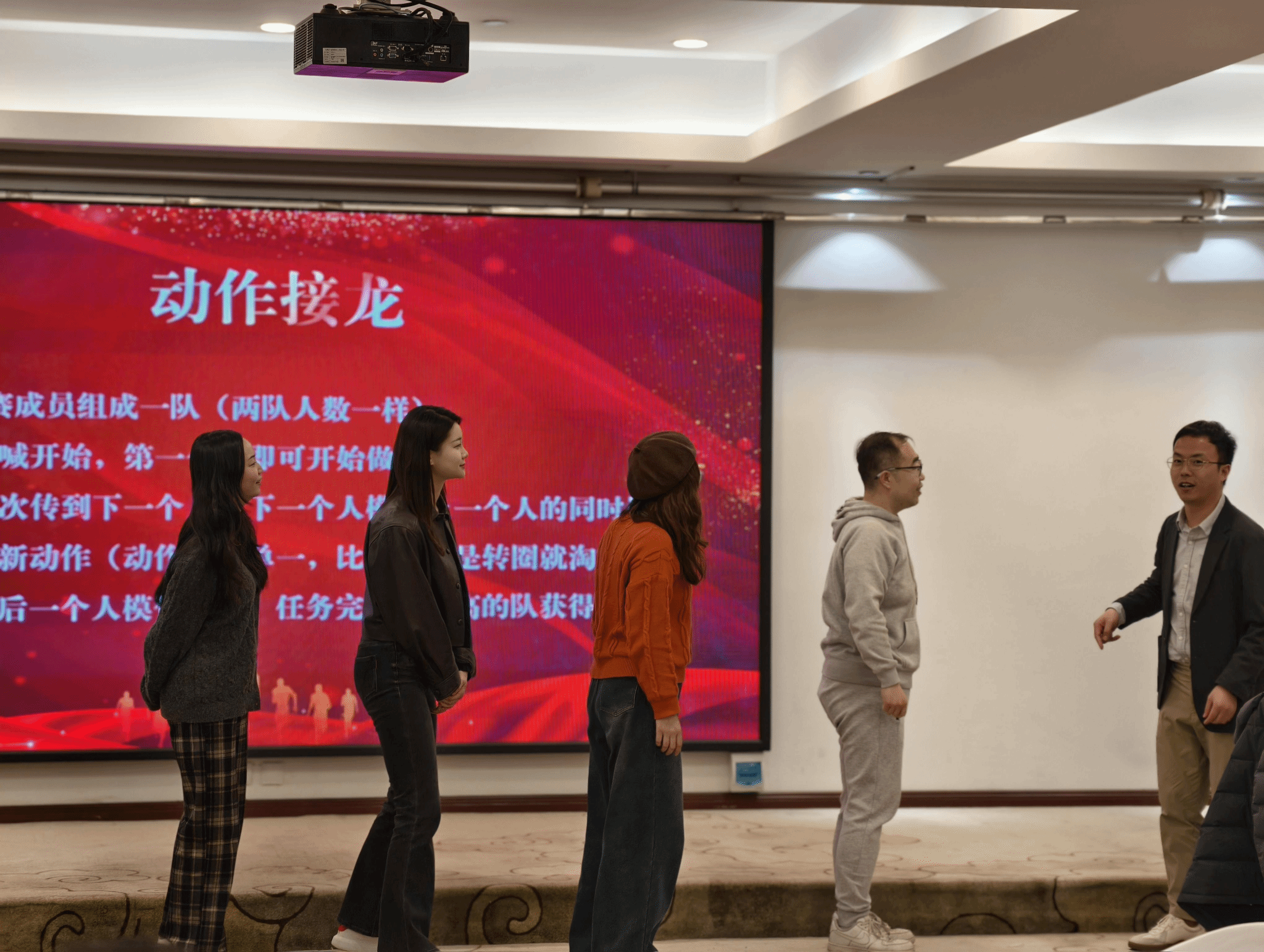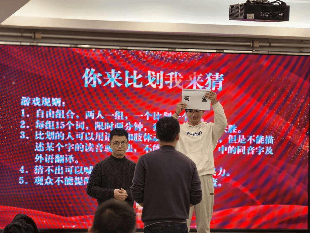 活动当日,新春晚会的现场洋溢着一片欢腾与喜悦。精心策划的“你比我猜”与“正话反说”游戏迅速点燃了全场热情,参与者们机智应答,逗得观众笑声不断。紧接着,充满挑战与趣味的游戏“动作接龙”与“口腔体操”轮番登场,考验了参与者的灵活应变与创意发挥,现场气氛愈发高涨。最后,压轴的“抢凳子”与“集体造句”游戏则将紧张刺激与欢声笑语完美融合,让每位参与者在团队协作的欢乐中尽情享受。期间穿插的精彩抽奖环节更是惊喜连连,将欢乐气氛推向一个又一个高潮。