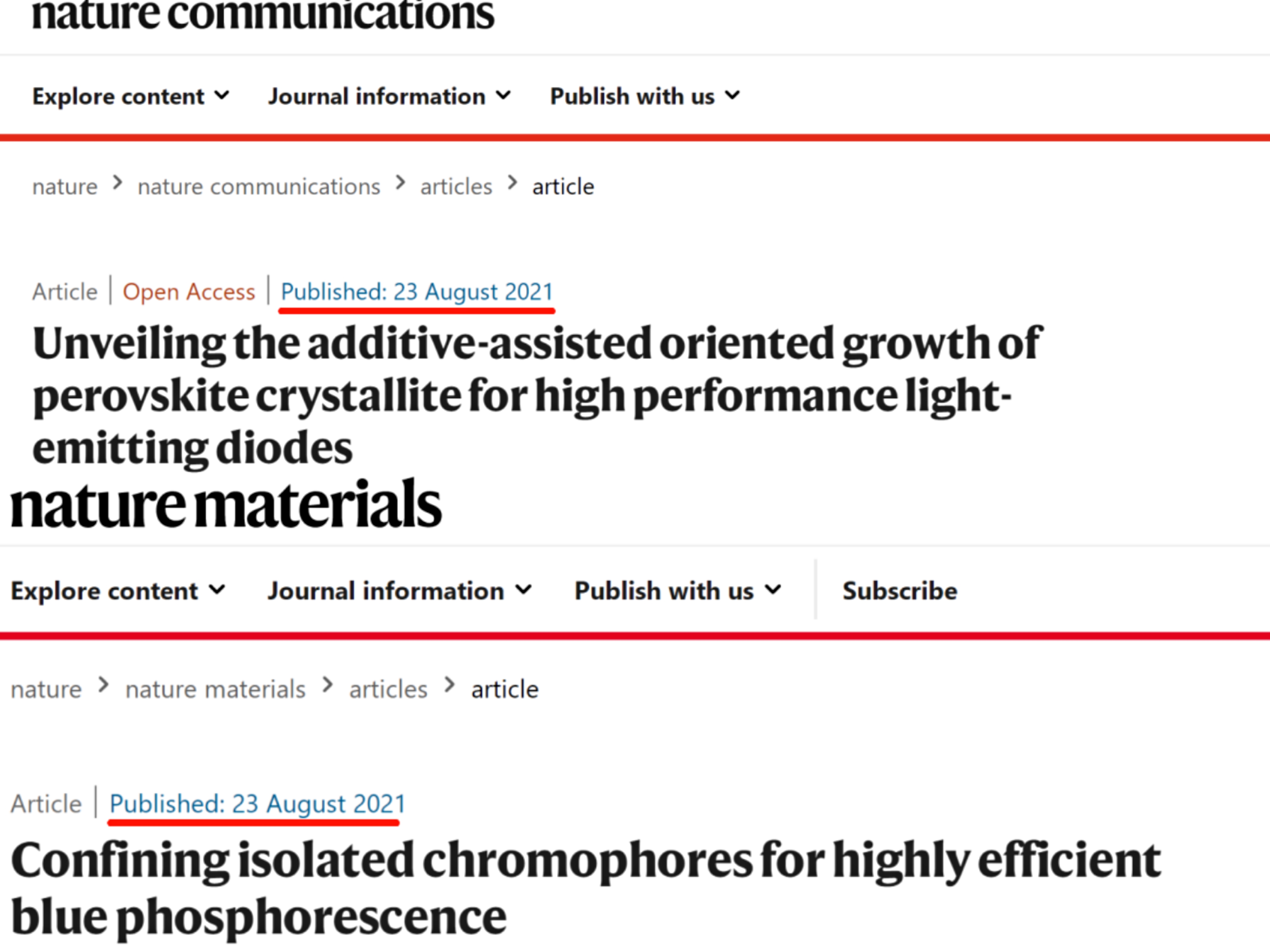 西工大新闻网8月26日电(王凡华)近日,西北工业大学黄维院士团队联合发表2篇高水平论文,聚焦钙钛矿LED的效率纪录和在有机室温磷光(有机超长余辉)等领域,相关成果于8月23日,分别在国际知名学术刊物《自然·通讯》《自然·材料》发表。