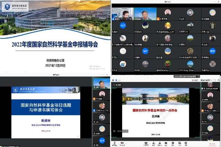 西工大新闻网12月29日电(李美静)国家自然科学基金申报工作目前正处于关键阶段,突如其来的疫情对工作提出了更新、更高的要求。yl9193永利为高质量有序推动2022年度国家自然科学基金申报工作,及时调整工作方式,于2021年12月28日线上举行全院专题辅导会。物理科学与技术学院赵建林教授与材料学院王洪强教授应邀分别作了题为《国家自然科学基金项目选题与申请书撰写体会》与《国家自然科学基金申请的一点体会》的专题报告。研究院近百位师生参加了此次会议。会议由副院长王学文主持。