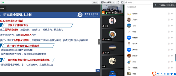 根据中央、学校人才工作会议精神和工作要点,于海东副主任介绍了研究院人才工作会议的组织安排和人才工作重点研讨专题。结合研究院“十四五”人才队伍建设规划,进一步梳理人才队伍现状及面临的挑战。本次会议就建立全员引才机制,构建全员引才新格局专题进行了深入地研讨。