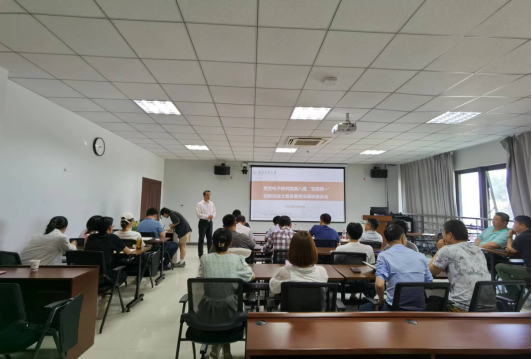 首先,贺华对第八届中国国际“互联网+”大学生创新创业大赛政策进行解读,重点介绍了本次大赛的新变化,并对往届优秀项目成果进行介绍并分享相关经验,与参会教师和学生热烈讨论交流。