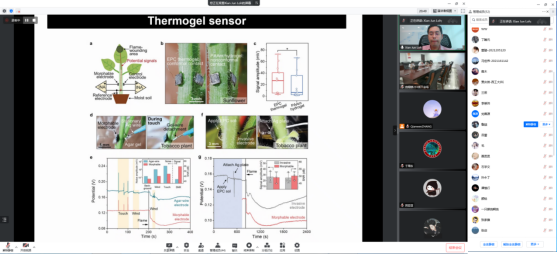 Loh Xian Jun院长介绍了近期课题组在可生物降解热凝胶领域的代表性工作。长期以来,热凝胶由具有亲水-疏水的嵌段共聚物组成,可以溶解疏水性和亲水性的药物,甚至是BSA这样的大分子,已成为药物递送的理想载体。在报告中,Loh Xian Jun院长向大家展示了一种基于热凝胶的可变形离子电极,该电极利用了热凝胶的溶胶-凝胶转变性质,在毛状植物上建立了粘合、共形、导电的界面,从而实现了对植物的高保真的电生理记录。