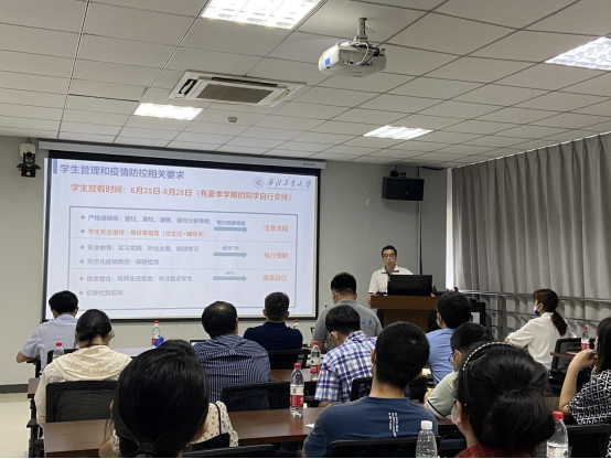 王凡华副书记就暑期学生管理工作进行了制度传达和工作布置,要求各位老师切实履行导师第一责任人职责,与辅导员、班主任一起做好暑期学生安全教育等相关工作。