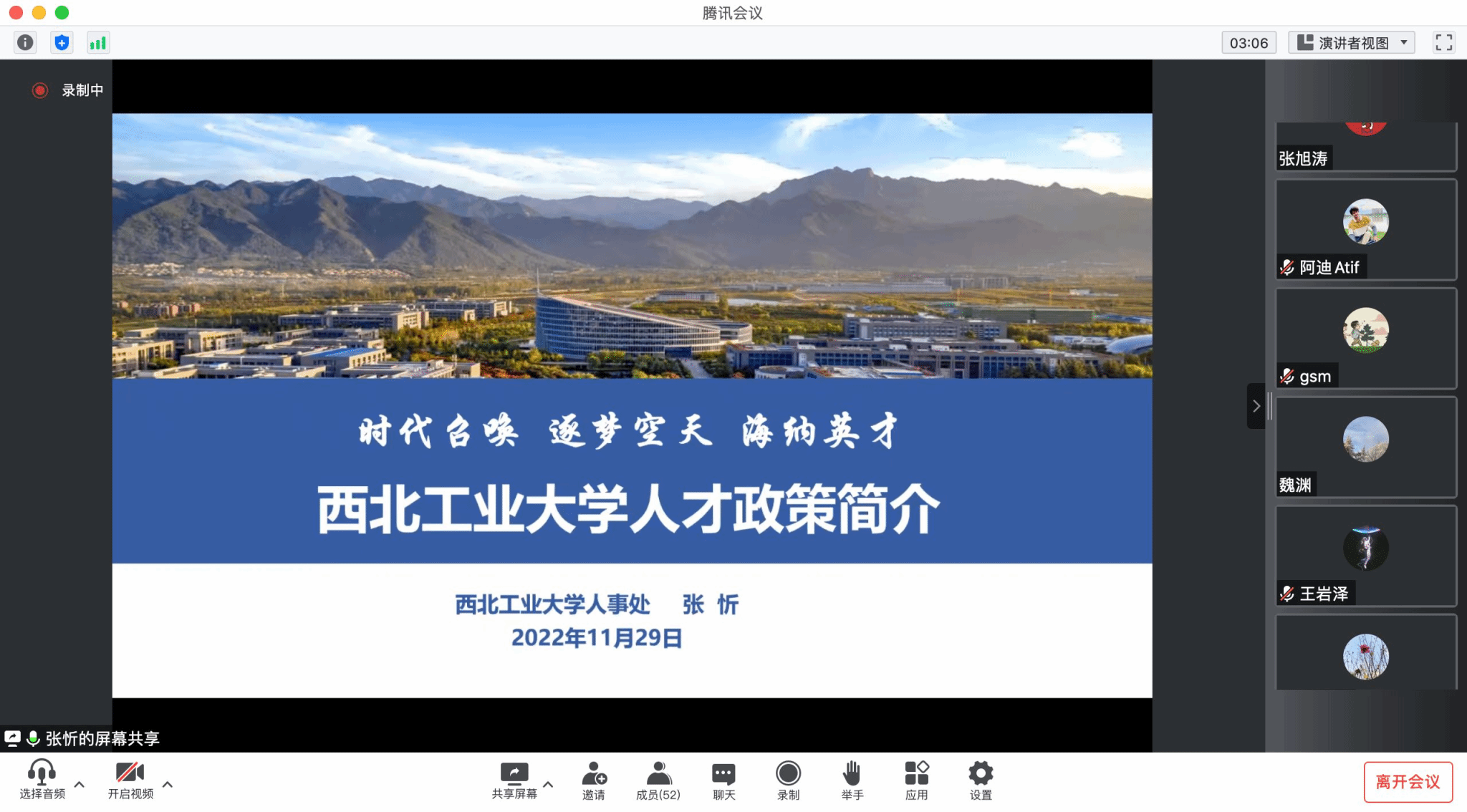 下午,第十届翱翔青年论坛顺利举行。学校人事处副处长张忻对参会青年才俊表示诚挚的欢迎,并就西北工业大学青年人才引进的相关政策、支持进行了详细地阐述,最后他鼓励青年学者融入人才强国战略,开辟发展新领域新赛道,担大任、立大志,展大才,踔厉奋发,共创未来。