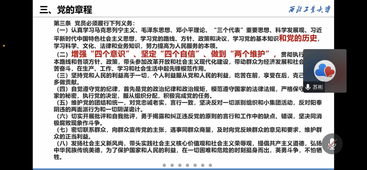 接着,苏彬带领与会成员集体学习了新党章,并针对党章中新修订的内容进行重点解读,他强调党章就像一面镜子,时刻提醒党员要积极发挥党员先锋模范和引领作用,大家要带头学习党章、遵守党章、拥护党章,切实把党章要求贯彻到日常工作中,做好、做精本职工作。