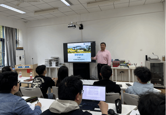 于海东老师以“梦想与科研”为主题,通过分享自己成长过程及求学经历,启发同学们通过课程、实践活动等找寻自己的科研兴趣点,通过兴趣、勤奋、坚持与合作,最终实现自己的人生理想。