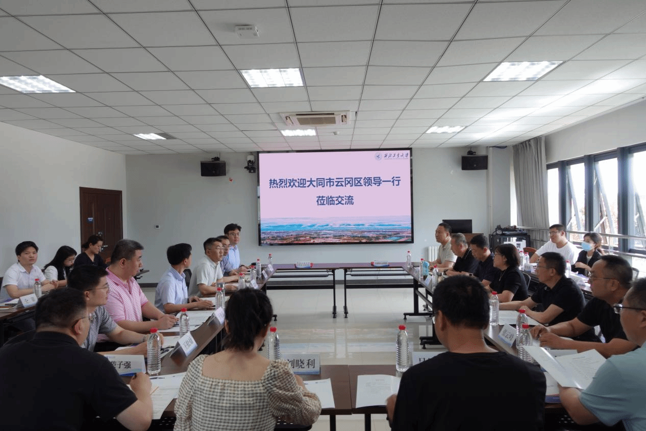 接着,在启翔楼226会议室展开座谈会,许广向与会人员介绍云冈经济技术开发区园区概况、产业布局、近年来生产科研及改革创新等情况,高建伟向与会人员介绍研究院概况、学科建设、师资队伍、人才培养、科学研究等进行详细介绍。