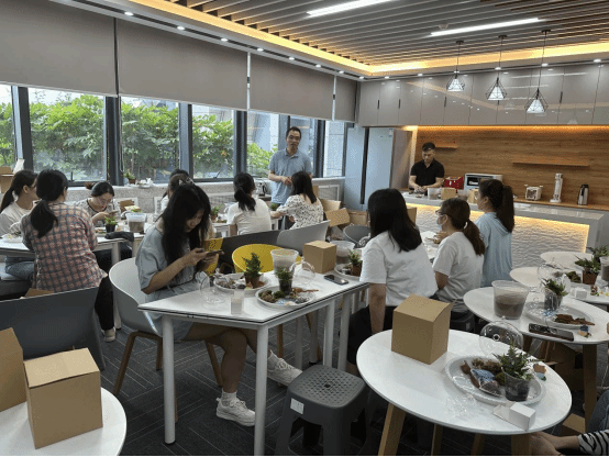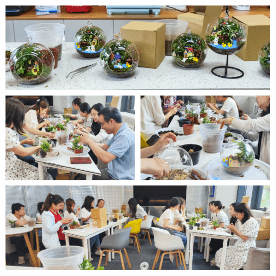 在花艺老师精心的讲解下,大家根据自己的想法和喜好,精心设计、耐心制作,每一件作品都充满了灵性与趣味。经过一个多小时的实践,大家积极展示自己的微景观作品,并互相欣赏、交流,脸上洋溢出灿烂的笑容。