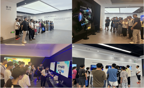 首先,师生们参观了京东方技术创新中心展厅,深入了解了企业在智慧园区、智慧金融、智慧医工、智慧零售等领域的应用成果,同学们直观体验到了“屏之物联”的丰富应用场景,赞叹科技创新带来的全新体验。