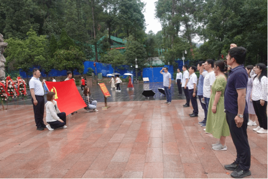 在红军山烈士陵园,党员们在巍峨雄伟的纪念碑前驻足默哀,共同瞻仰革命烈士纪念碑,向革命先烈敬献花篮,深切缅怀革命先烈,并面向鲜红的党旗重温入党誓词。大家紧随讲解员脚步先后参观了邓萍烈士牺牲纪念雕塑、红军坟、红军卫生员铜像、在黔牺牲烈士英烈墙等纪念建筑物,认真聆听一个个令人动容的革命故事。