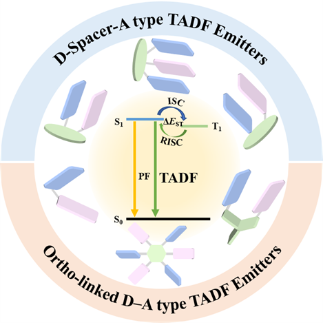 热激活延迟荧光(TADF)材料在有机发光二极管(OLED)领域具有广阔的应用前景。与传统的TADF材料相比,具有高度扭曲结构的TADF材料表现出多通道电荷转移特性,这种刚性的分子结构有利于抑制非辐射跃迁过程,实现高效的激子利用率。其中分子构型和电荷转移机制对TADF材料的光物理特性有着关键的影响,这对设计高效的OLED器件意义重大。