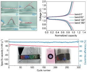 为探究该梯度主体材料的实际应用价值,该工作同时利用造纸工艺制备了纸基Mo6S8正极,并组装得到了柔性纸基镁金属电池,其表现出优异的耐弯曲特性和电化学稳定性,为未来高性能柔性金属电池的发展提供了借鉴。