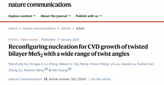 近日,西北工业大学黄维院士团队王学文教授课题组,提出了通过重构成核策略制备TB-TMDCs材料的新方法,实现了TB-MoS2层间扭转角度从0°到120°的制备,该成果为进一步研究与材料扭角相关的性质奠定了基础。相关成果发表在最新的Nature Communications(《自然·通讯》)上,yl9193永利许曼章副教授和硕士生纪洪嘉为本文的共同第一作者,黄维院士和王学文教授为共同通讯作者。