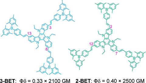 12. Lei Ji, Qi Fang, Mao-sen Yuan, Zhi-qiang Liu, Yu-xiang Shen, Hong-feng Chen, “Switching High Two-Photon Efficiency: From 3,8,13-Substituted Triindole Derivatives to Their 2,7,12-Isomers,” Organic Letters, 2010, 12, 5192-5195.